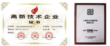 憑借過硬的創(chuàng)新能力和研發(fā)能力,上海尼為機(jī)械科技有限公司先后被評為“高新技術(shù)企業(yè)”、“專精 特新” 、“科技型中小企業(yè)”,見證了我司科技創(chuàng)新的雄厚實(shí)力。