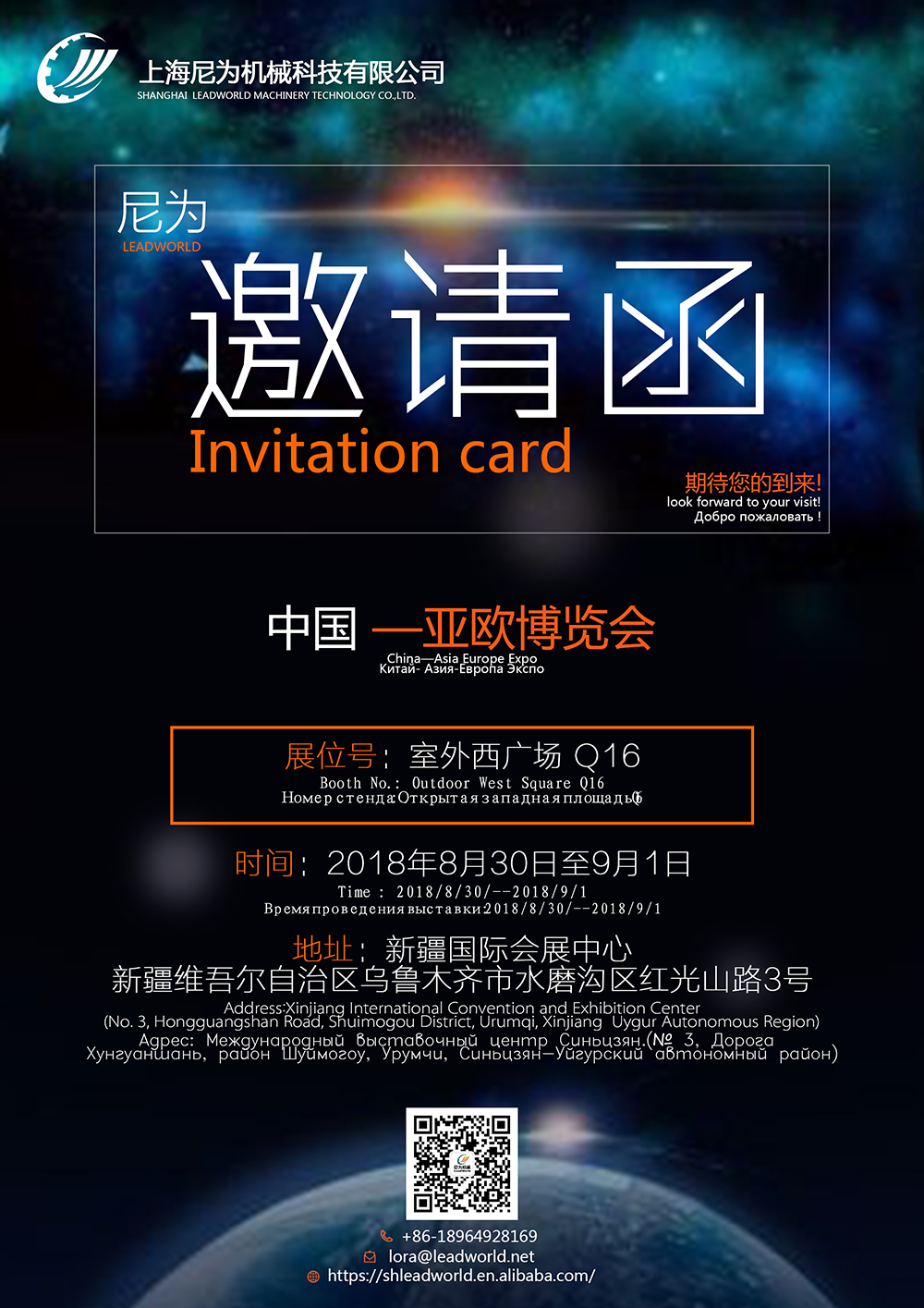 上海尼為機(jī)械科技有限公司誠意邀請您參觀將于2018年的8月30日至9月1日在新疆國際會展中心隆重舉行的中國一亞歐博覽會